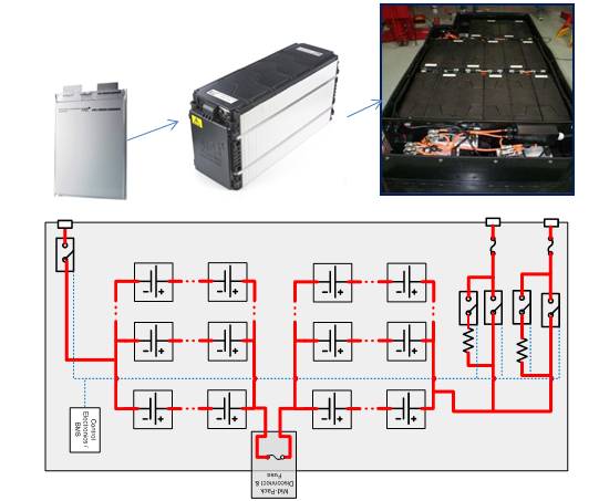 圖5包括模組成組,電池包布置還有系統(tǒng)框圖,其中模組(含BMU)這一級(jí),基本是電池廠出來各個(gè)產(chǎn)品(大車、小車)都能用了。整個(gè)從單體=》模組=》電池包,然后在車頂和車位來配置兩大塊。