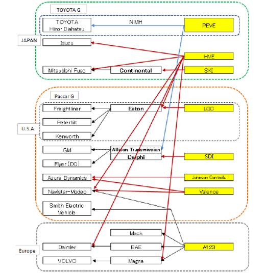 ·卡車 Smith、Volvo、Navistar、Daimler、TOYOTA、Hino、ISUZU、Iveco、PACCAR、Azure Dynamics、Daihatsu、Nissan和Mitsubishi Fuso。