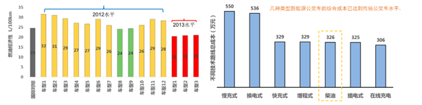 更有趣的是,通過配置電池,將電動(dòng)里程零耗油的部分換算進(jìn)去,就可以把整個(gè)驅(qū)動(dòng)系統(tǒng)的效率的差異打掉,所以對(duì)比國外的技術(shù)水平,我們的PHEV一下子把老師傅給超過去了。這個(gè)有點(diǎn)類似文字游戲,是通過加多了錢(國家補(bǔ)貼和地方補(bǔ)貼)配置多的電池的代價(jià)換來的。從運(yùn)營公司的角度來看,用電還是省錢,所以出現(xiàn)某地一天充五次插電式大巴的故事發(fā)生了。